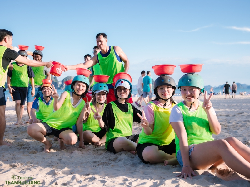 Hoạt động team building trên bãi biển Cát Bà là điểm nhấn quan trọng của chương trình, diễn ra tại các bãi biển nổi tiếng như Cát Cò 1, Cát Cò 2 hoặc khu vực bãi biển riêng của resort. Với bãi cát rộng, khung cảnh biển xanh và không khí trong lành, các hoạt động tập thể trở nên sôi động và hấp dẫn hơn.