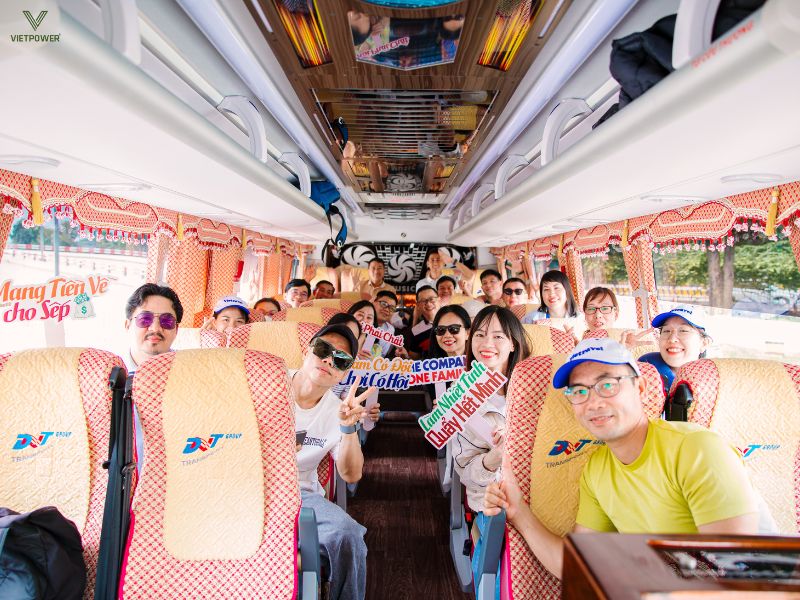 | 06h30 – 09h30 | Di chuyển | Xe đưa đón đoàn từ điểm xuất phát. Trên xe tổ chức mini game: đố vui, hỏi nhanh – đáp gọn, ghép đội ngẫu nhiên, giúp mọi người thư giãn và làm quen. |